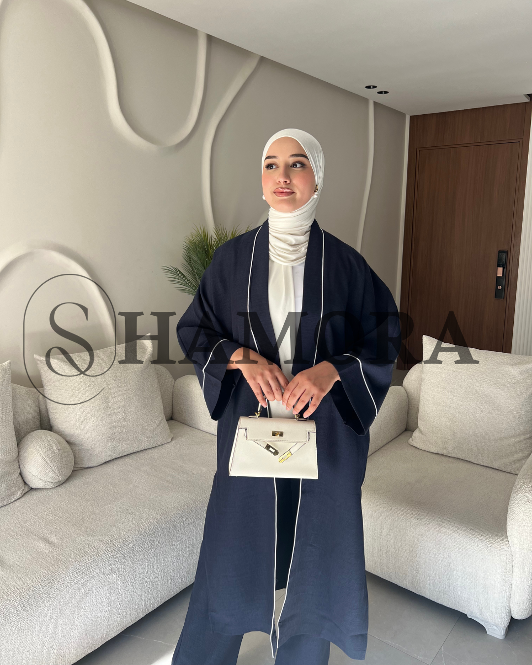 - اانطلقي نحو الأناقة بكل سهولة مع، طقم العباءات الأكثر مبيعًا لدينا والمُكوّن من قطعتين، والمصمم للمرأة العصرية المحتشمة. متوفر باللون الأزرق الداكن، والأسود الكلاسيكي، والبيج الناعم، ويجمع هذا الطقم بين الفخامة والراحة والتصميم الكلاسيكي.