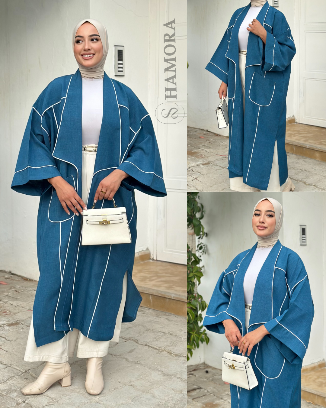 تميّزي بإطلالة استثنائية تجمع بين الراحة والرقي مع KIMONO المصنوع من قماش لولان الفاخر، المعروف بلمسته الناعمة وخفته على الجسم.
