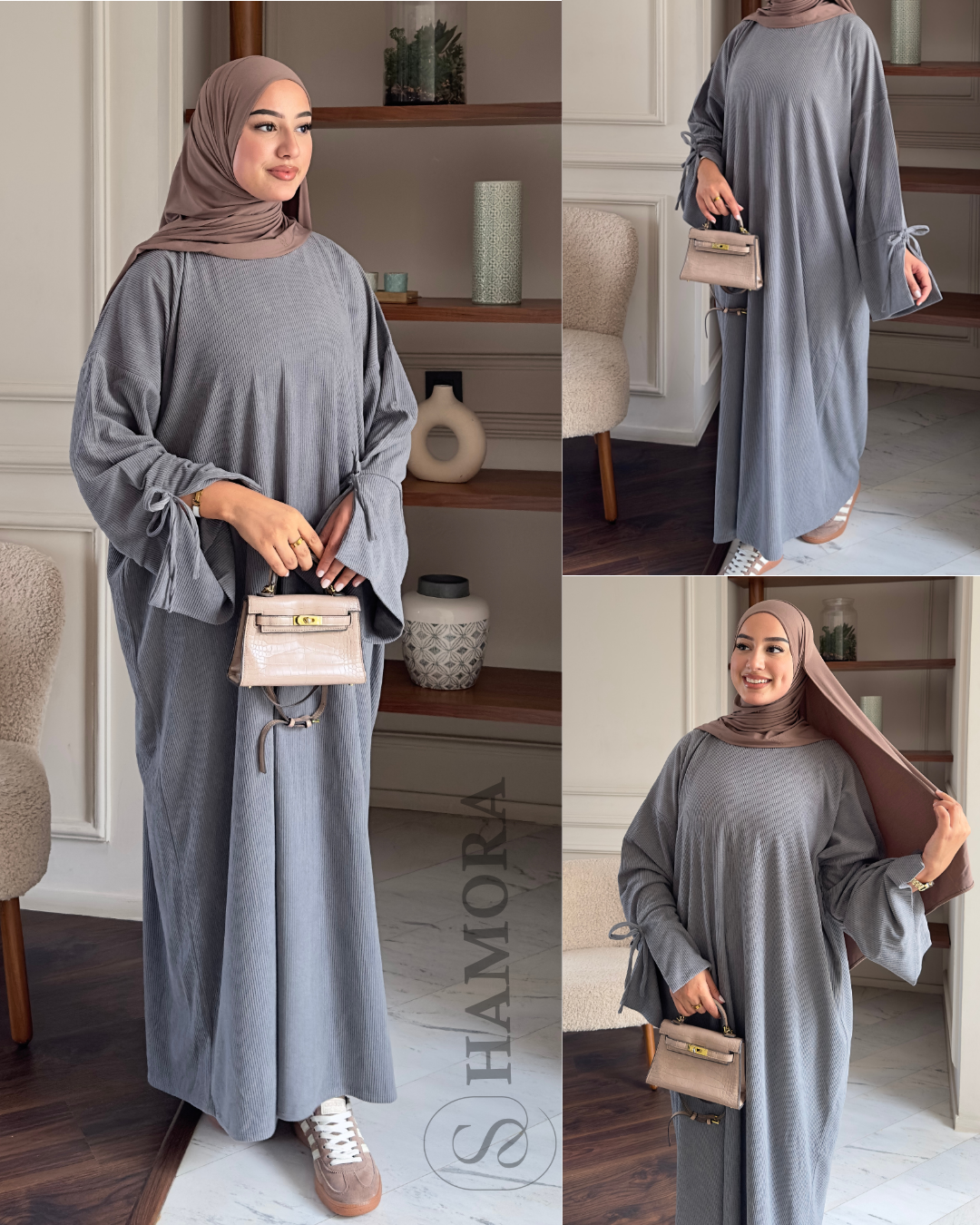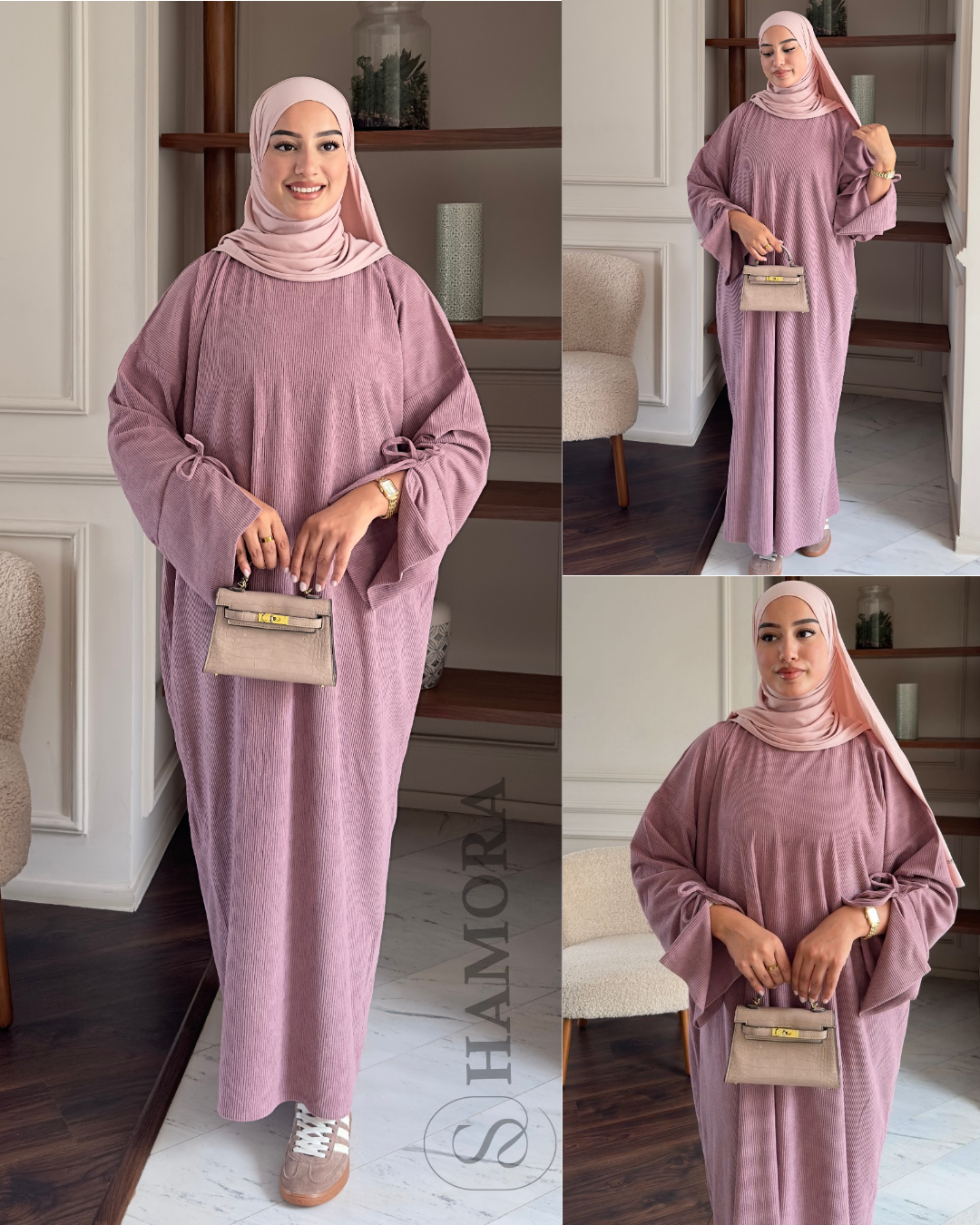 العباية تتميّز بتفاصيل بسيطة وأكمام فضفاضة تضيف لمسة فخمة، لتمنحك راحة وأناقة في كل مناسبة — سواء داخل المنزل أو في الخروج اليومي.